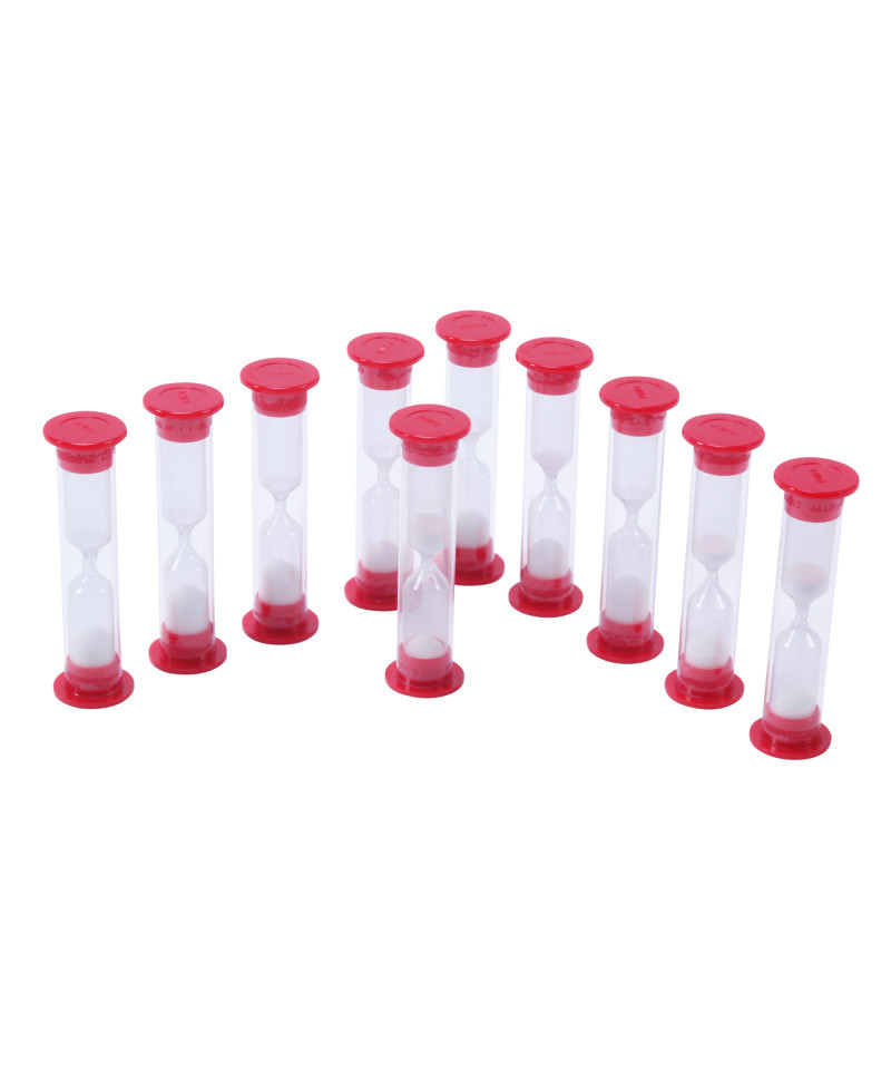 Sand timers are great for games, times tests and other classroom time managements. This set includes 10 plastic, safe, one minute timers.