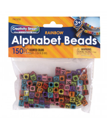 Creativity Street® Assorted Rainbow Colored Alphabet Beads are 6mm and have a cubic shape. These plastic beads are sold as 150 per pack and are... Add to cart Creativity Street® Alphabet Beads, Assorted Rainbow... $6.99