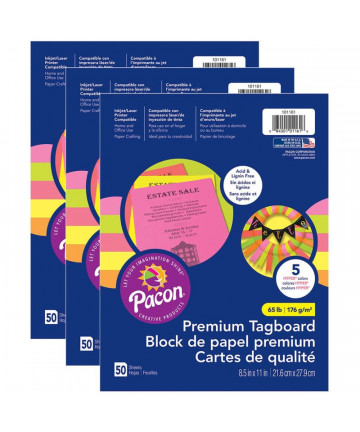 Strong 65 lb. paper great for art projects, crafts, card and recipe making and more. Inkjet and laser printer compatible. Ten bright colors per... Add to cart Pacon® Premium Tagboard Assortment, 50 Sheets Per Pack, 3... $26.82