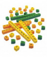 Use our blends cubes together with CVC cubes to create thousands of sounds and words! This set of 90 cubes includes the most frequently used two-letter initial blends, medial blends, digraphs and diphthongs. The initial blends and digraphs are green, the medial vowels are orange, and the ending blends and digraphs are yellow. The Unifix Blend Cubes Set includes an equal amount of each color. Excellent resource for your hands-on, visual/spatial learners. Packaged in plastic storage container. Starter set for 1-2 students.