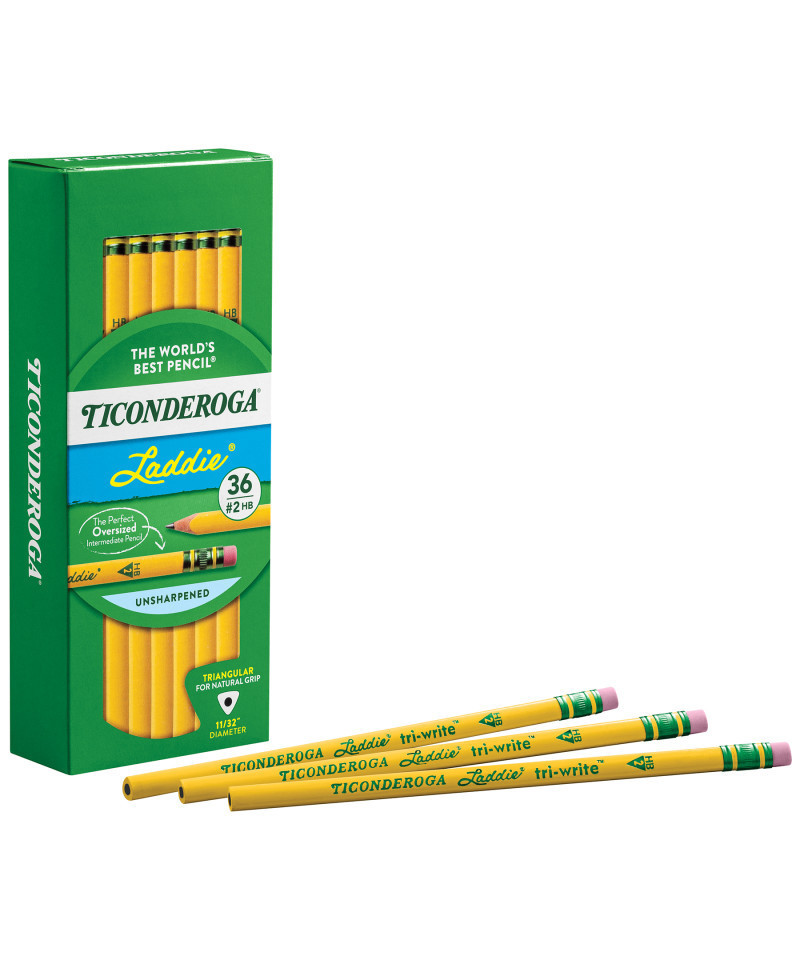 This intermediate size (11/32") triangular No. 2 pencil makes moving from printing to cursive writing a comfortable transition. The naturally ergonomic, triangular shape helps teach correct pencil grip. A thick graphite core delivers a broad smooth line. Available with or without latex-free eraser. Finish contains Microban® anti-microbial protection to inhibit the growth of odor and stain causing bacteria on the pencil. PMA certified nontoxic.