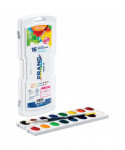 Ever the gold standard in watercolors, Prang® Watercolors offer smoothness, perfect blending, intense pigments and the best tone palette of its kind. Each Prang Semi-Moist Oval Pan Watercolor Set features extra-deep pans that can easily be replaced by refills, a wood-handled paintbrush and a strong white plastic case with built-in mixing area.