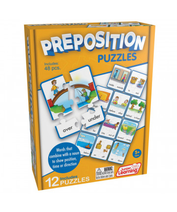 A Preposition is a word that combines with a noun to show position, time or direction (such as near and far). Match the words with their... Add to cart Junior Learning® Preposition Puzzles $12.99