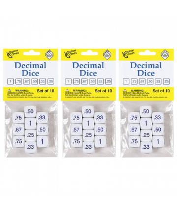Koplow Games Decimal Dice Game Set features common fraction equivalents that develop decimal skills. A hands-on product to reinforce essential math... Add to cart Koplow Games Decimal Dice Set, 10 Per Pack, 3 Packs $25.50