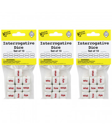 Answer with questions, develop writing and story skills. Each set includes 10 dice. Sold as 3 sets for a total of 30 dice. Add to cart Koplow Games Interrogative Dice, 10 Per Set, 3 Sets $25.50