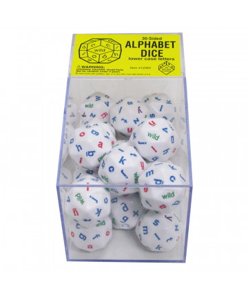 These dice have various uses depending on age. These oversized trial 30-sided dice can teach younger children their letters, or older children can... Add to cart Koplow Games 30-Sided Alphabet Dice, Lower Case Letters,... $99.00