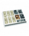 - Set includes 2 coins and bills, and deluxe storage tray.