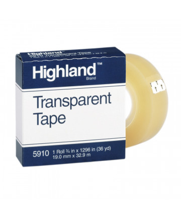 Highland Transparent Tape is an economical invisible tape with a matte finish for basic office use. Made of clear polypropylene backing with an... Add to cart Highland™ Transparent Tape, 1/2" x 1296" Per Roll, 1"... $16.80