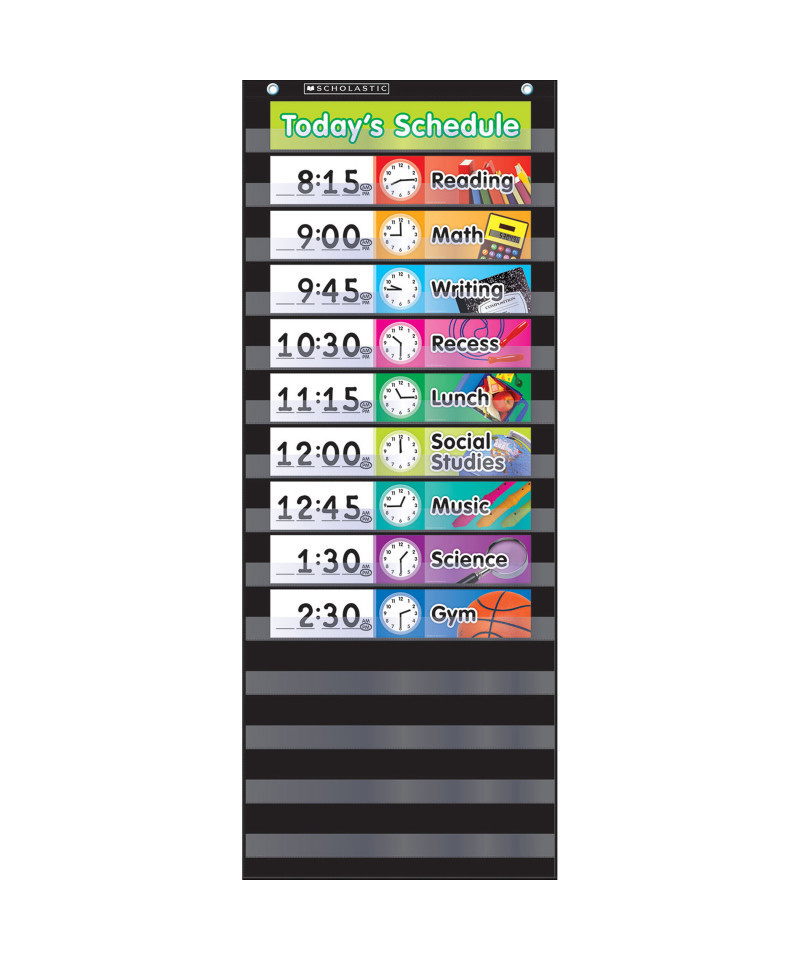 durable nylon pocket chart (13" x 33") with 14 see-through pockets