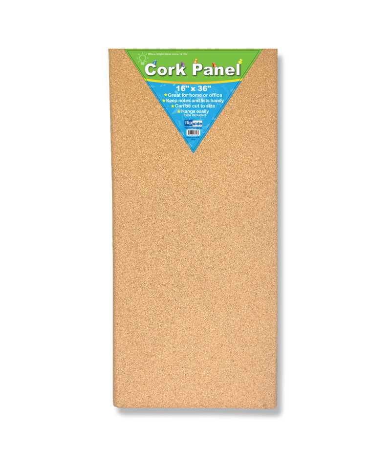 Cork panels provide easy access to the important stuff of everyday living! Self-healing natural cork holds notes, lists, and reminders of all sorts. Natural cork lends a sophisticated look to your message space. Cork wraps the long edges which are rounded to add style. Can be cut to size. Hangs easily with adhesive tabs included. Board measures 16" x 36" x 0.5".
