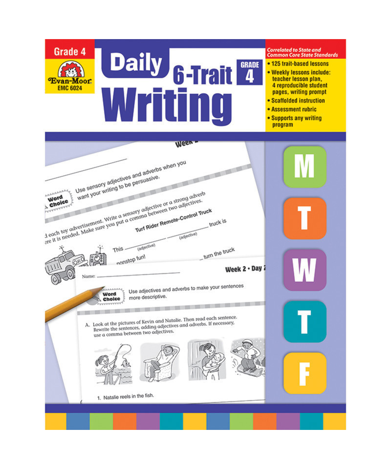 Give your fourth-graders the fun and focused writing practice they need to become to become strong and successful writers. The 125 engaging, 10- to 15-minute lessons support any writing program. 25 weeks of instruction cover the following trait-based writing skills.