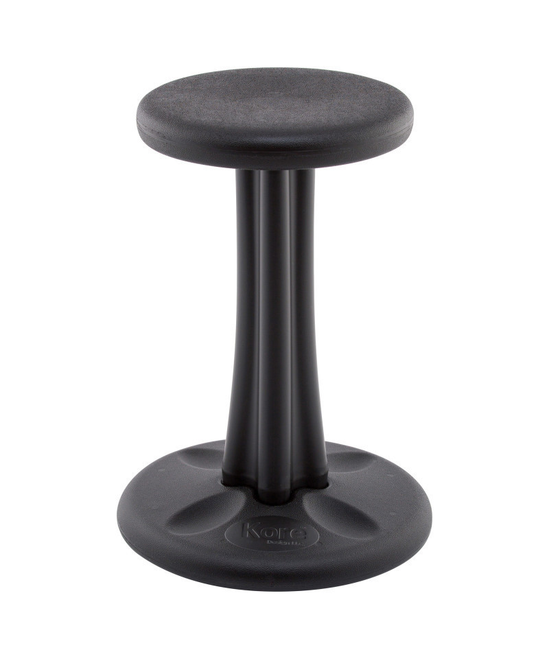 The innovative Kore Design® Kids Pre-Teen Wobble Chair with its gently-rounded bottom encourages active sitting and allows one's knees, hips and back to find comfortable and ever-changing positions. Continuous movement increases Secondary Focus – concentrating on the task instead of fixating on sitting still. Active sitting can also help improve posture and prevent pain or stiffness that may result from prolonged sitting. Seat height 18.7"; suggested for ages 10-11; Grade 5-6; child height 54"-57".