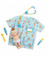 - Includes scrubs, plush baby with fastening diaper, syringe, thermometer, stethoscope, ear scope, and reusable name tag