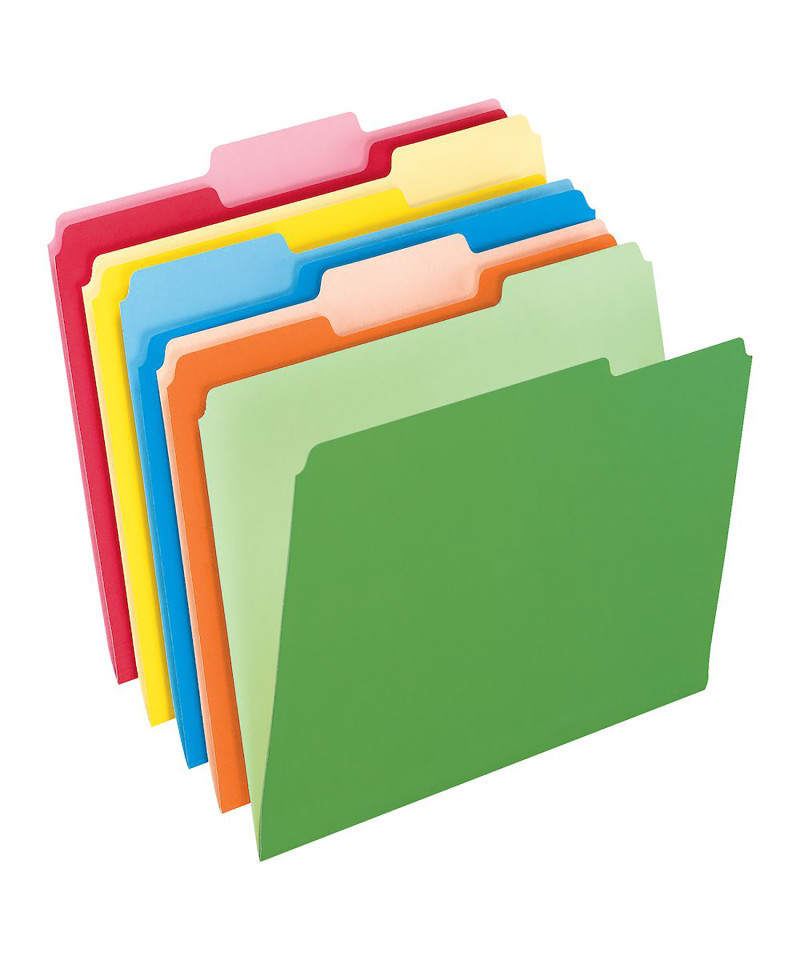 Pendaflex® Two-Tone Color File Folders come in brilliant shades with lighter interiors to prevent time-wasting misfiles. Create bright, color-coded files for fast, efficient filing or reverse them for double the color options. 1/3-Cut tabs in assorted positions. Letter size, assorted colors: bright green, yellow, red, blue, orange. 100 per box.