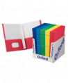Economy weight paper for extra value. Metal Fasteners hold 3-hole punched paper. Pocket Folders store up to 135 sheets of letter sized paper. Fasteners prevent important papers from falling out. Die-cut business card holder on inside pocket. 100 per box in assorted colors.