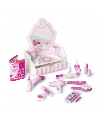 Add glamour and style to playtime with these wooden beauty essentials for make-believe makeovers! The 18-piece set includes a sturdy white and pink... Add to cart Melissa & Doug Beauty Salon Play Set $64.99