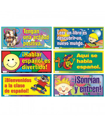 A decorative set of 6 Spanish reference posters for the classroom. Measures 18" x 8". Colorful resource that motivates while teaching. Great for... Add to cart Poster Pals® Spanish Variety Poster Set $14.99