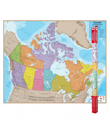 This laminated map of Canada measures 47" x 38", with nice detail, and comes in a sturdy box. It is a Bi-Lingual French/English map. Add to cart Hemispheres® Laminated Map, Canada, 47" x 38" $29.99