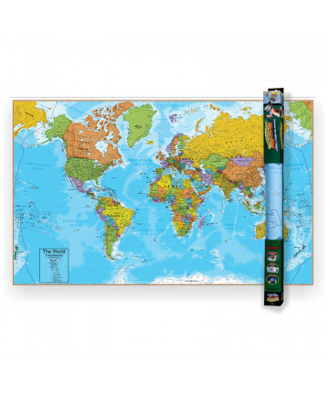 This beautiful Contemporary Series World map is laminated and measures 38" x 61". Can be used for write on and wipe off! A great learning tool. Add to cart Hemispheres® Contemporary Laminated Wall Map, World $29.99