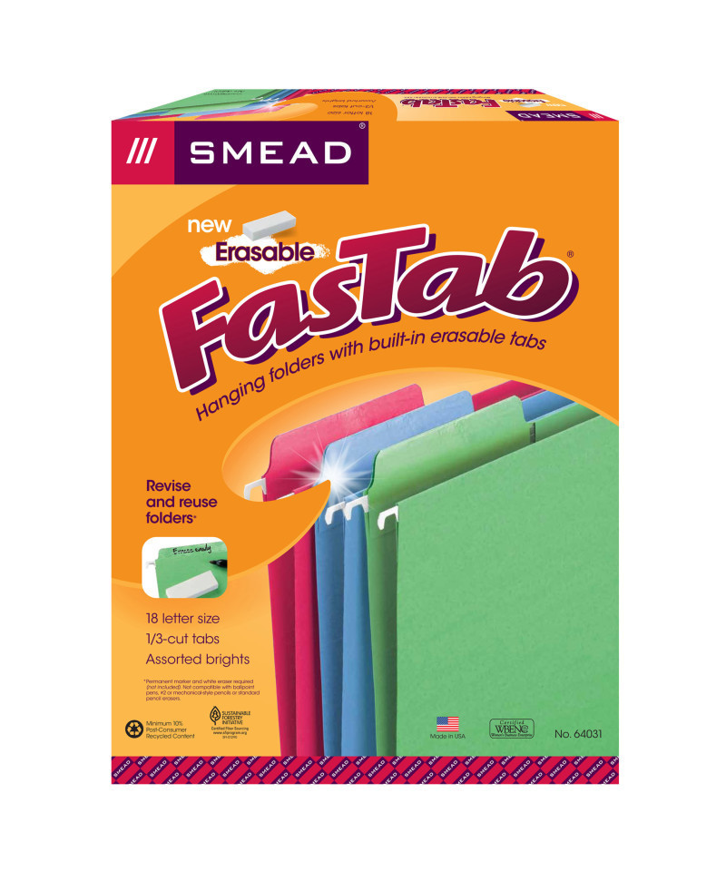 Erasable FasTab hanging folders have a special erasable surface which makes it possible to revise and reuse hanging folders. Write directly on the erasable tab with a permanent marker and easily erase with a standard white eraser, making this a eco-friendly, reusable solution for your filing needs. These folders have built-in reinforced tabs attached to the folder for hassle-free filing. No assembly required.