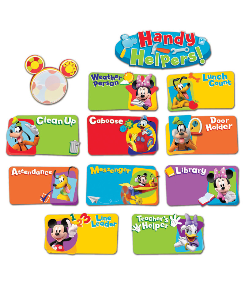 Eureka Mini Bulletin Board Sets are a great way to spice up any bulletin board, hallway, wall and classroom space with fun designs and themes. Includes: 14 Classroom Job Signs, 1 Handy Helper Sign, 1 Toodles.