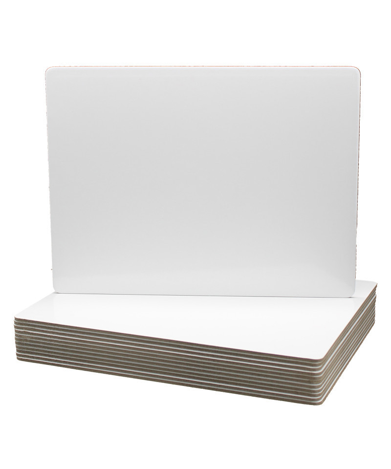 Economical, unframed lap board with magnetic-receptive plain dry erase surface is ideal for academic practice, doodling and for use with magnetic manipulatives! Quality write-and-wipe surface is non-ghosting. Rounded corners for safety and comfort. Backing is warp and chip resistant. Boards measure 9" x 12" x 0.125". Class pack includes 12 boards.