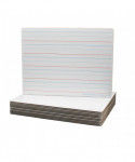 Ideal for teaching and practicing fundamentals for early learners and for use with magnetic manipulatives. Bright white board contains 5 sets of blue headline and broken mid-line plus red baseline format. Each line set measures 1 1/8" with 3/8" of blank descender space between sets. Back side is magnetic plain white dry erase. Boards feature a non-ghosting dry erase surface with rounded corners and smooth edges for comfort and safety. Hardboard backing is warp and chip resistant. Measures 12" x 9" x 0.125" thick. Class pack of 12.