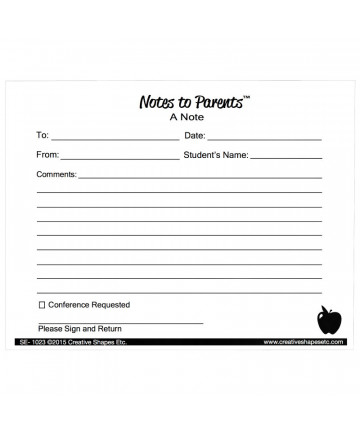 Notes to Parents™ are great for documenting communication. Two-part carbon-less forms document communication and creates a file copy instantly!... Add to cart Creative Shapes Etc. Notes to Parents™, Blank Note $9.25