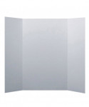 Constructed from 1-ply corrugated fiberboard with overlapping side panels that make transporting the board easy. The smooth bright white surface has a matte finish that easily accepts markers, crayons, paints and adhesives. Back of board is brown kraft. Measures 36" high x 48" wide overall—side panels measure 36" high x 12.75" wide and the center panel measures 36" high x 22.5" wide. Pack of 24. Made in USA.