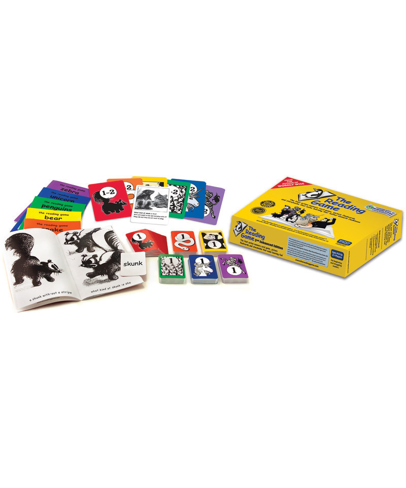 The Reading Game is a fast-action memory card word game. Its captioned-picture flashcards reinforce the words learned through game play in short sentences and introduce capitalization and punctuation. Each of the content rich stories is told using only the 30 words learned through game play to ensure reading success and to build confidence in reading. The Reading Game includes six decks of matching word playing cards, six sets of picture flashcards, six beautifully illustrated story books, and a Teacher and Parent's Guide. For 2 or more players, ages 4 and up.