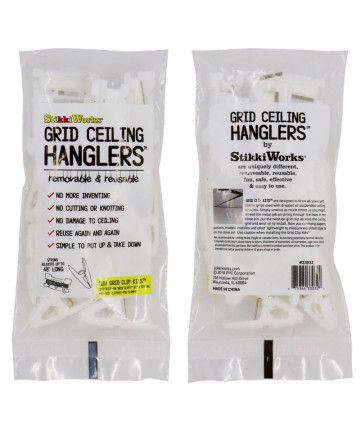 Grid Clip Kits™ are designed to fit on all standard ceiling grids used with dropped or suspended ceiling systems. Simply unwind as much string as... Add to cart StikkiWorks Grid Ceiling Hanglers™ Grid Clip Kits™, 10 Count $13.08