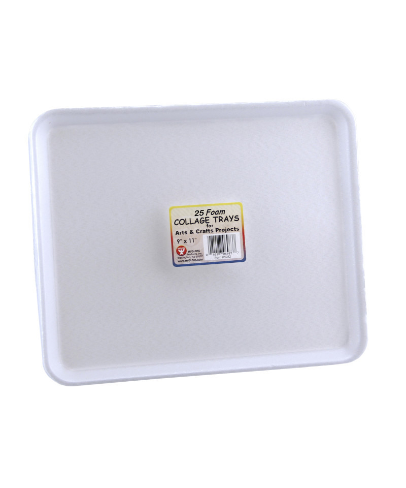 These white foam trays are the perfect backgrounds for your works of art. Bulky craft materials like buttons, gravel, or sea shells often need a sturdy surface, and these collage trays will do the trick! Create stunning artwork using some glue and any craft supplies you have on hand. The foam trays are also useful for handing out project supplies in a class or group setting. Each pack includes 25 trays. Trays measure 9" x 11"
