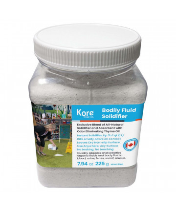 This unique granular solidifier quickly absorbs and solidifies body fluids and organic fluids such as blood, urine, vomit, feces and mucus and... Add to cart Kore Design Body Fluid Solidifier, Light Weight... $29.99