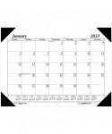 12 Month Calendar: January - December. Full Calendar Year Along The Bottom. Refillable 4 corner holder. Four reinforced black leatherette corners. Includes Julian dates and days remaining. Printed on 100% post-consumer recycled paper with soy ink. Made in the USA.