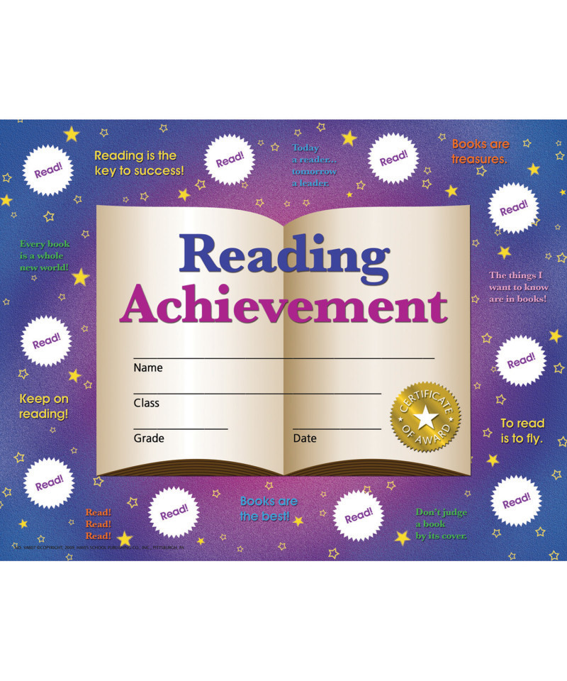 Recognize your student's academic success with Hayes' Reading Achievement Stick-to-it Certificates!