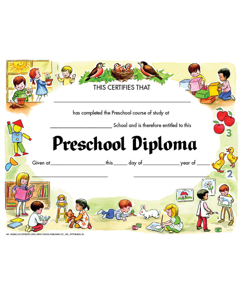 Preschool Diplomas are a classic styled Hayes diploma. These beautifully designed diplomas feature our Primary Border 2. Printed in full color on high quality paper. Great to give out at end of the school year parties, award ceremonies, and graduations. They will be a keepsake for years to come. Certificates measure 8.5" x 11". Each pack includes 30 certificates.