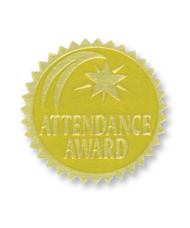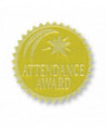 Attendance Award Gold Foil Embossed Certificate Seals are gold foil embossed certificate seals add an extra touch of class to any certificate, award or diploma! Embossed with Attendance Award surrounded by a shooting star for that special day. Also great for prizes and bulletin boards. Ideal for any Hayes award, certificate or diploma. Measures 1 3/4" diameter. Each pack includes 54 self-adhesive seals.