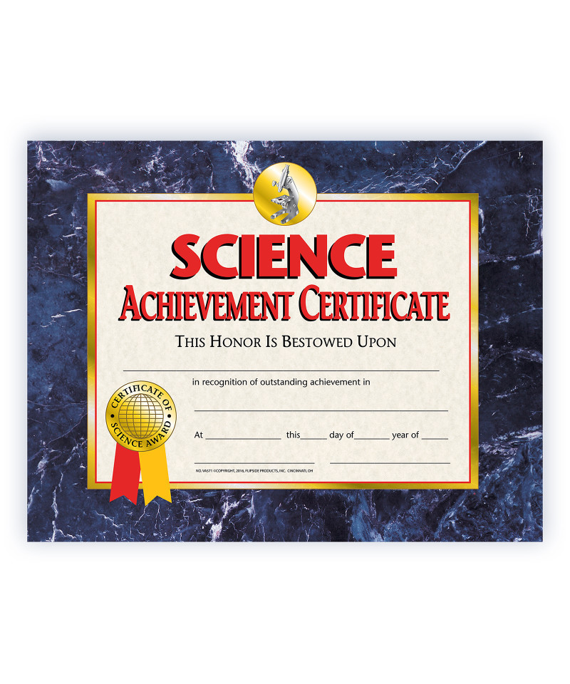 Science Achievement Certificates awards student for outstanding work during science class and science club. These beautifully designed Hayes certificates feature a purple marbled background. These are great to give out at award ceremonies and end of the school year parties. Certificates measure 8.5" x 11". Each pack includes 30 certificates.