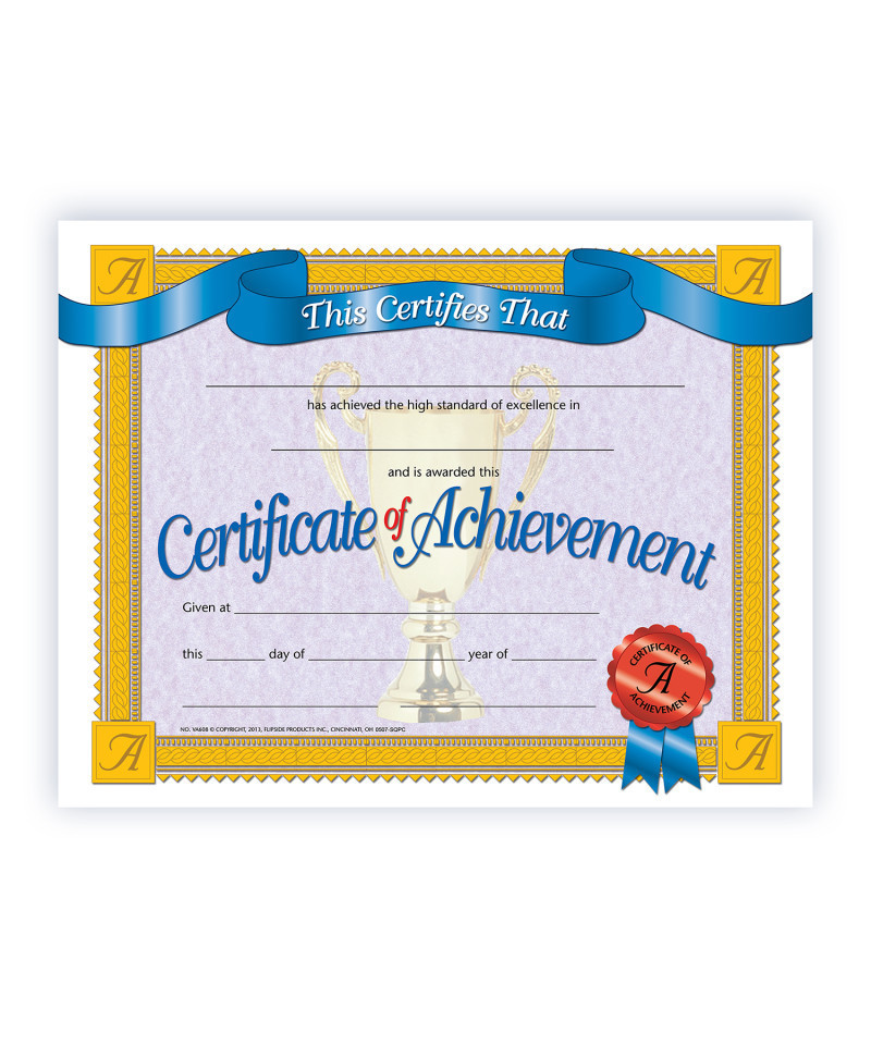 Certificate of Achievement is a great way to reward someone for outstanding work. Hayes student certificates can be personalized with our downloadable template. They are printed in full color on high quality matte paper. Inkjet and laser printer friendly. Great for teachers and principals to give out at end of the school year parties and award ceremonies. Also, great to be used in a work environment. Each individual pack contains 30 certificates and measure 8.5" x 11".