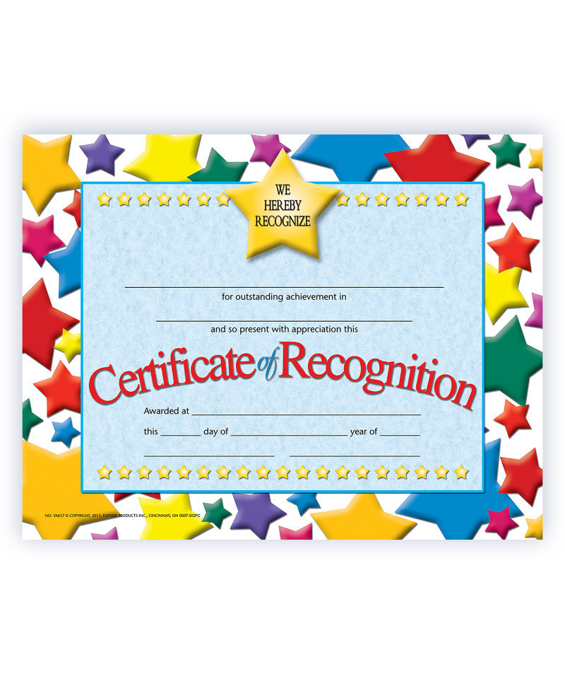 - Certificate of Recognition have a colorful star background that is printed in full color on high quality matte paper.