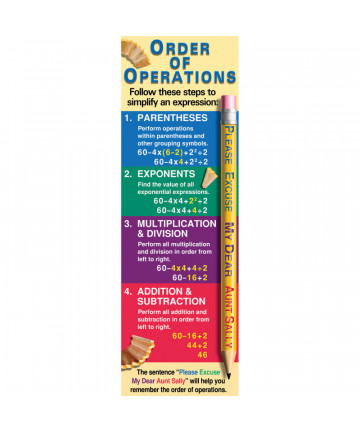 This giant poster will help your students remember the steps to follow when simplifying an expression—an important pre-algebra task. The teacher’s... Add to cart McDonald Publishing Order of Operations Colossal Poster $9.99