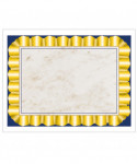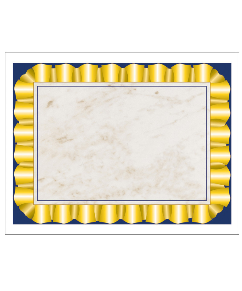 Gold Ribbon Border Paper is a Hayes bestseller! Deep blue with ribbed gold ribbon frames a lightly marbleized center. Design and create your very own "gold ribbon" invitation, program, diploma, award or certificate with this original preprinted border and your favorite word processor or page layout program. Can be printed or handwritten. Our border paper can be used by administrators and teachers as end of the school year awards and certificates. Printed in full color on high quality paper. Great classroom incentives. Measures 8.5" x 11". Each pack includes 50 sheets.