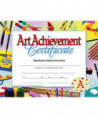 Art Achievement Certificates are a great way to recognize student who have excelled in art class or art club. These authentic Hayes certificates features a multi color background with images of different art supplies scattered throughout the background. These student certificates are printed in full color on high quality paper. They are great for teachers and administrators to give out at end of the school year parties and award ceremonies. These achievement certificates also work great as classroom incentives. Certificates measure 8.5" x 11". Each pack includes 30 certificates.