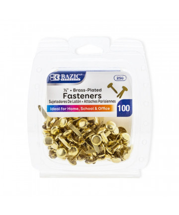 These fasteners measure 0.5 inches long with a 0.8 cm diameter head. The brass plating enhances the aesthetic appeal and adds extra protection,... Add to cart BAZIC Products® Brass-Plated Fasteners, 1/2", Pack of 100 $1.99