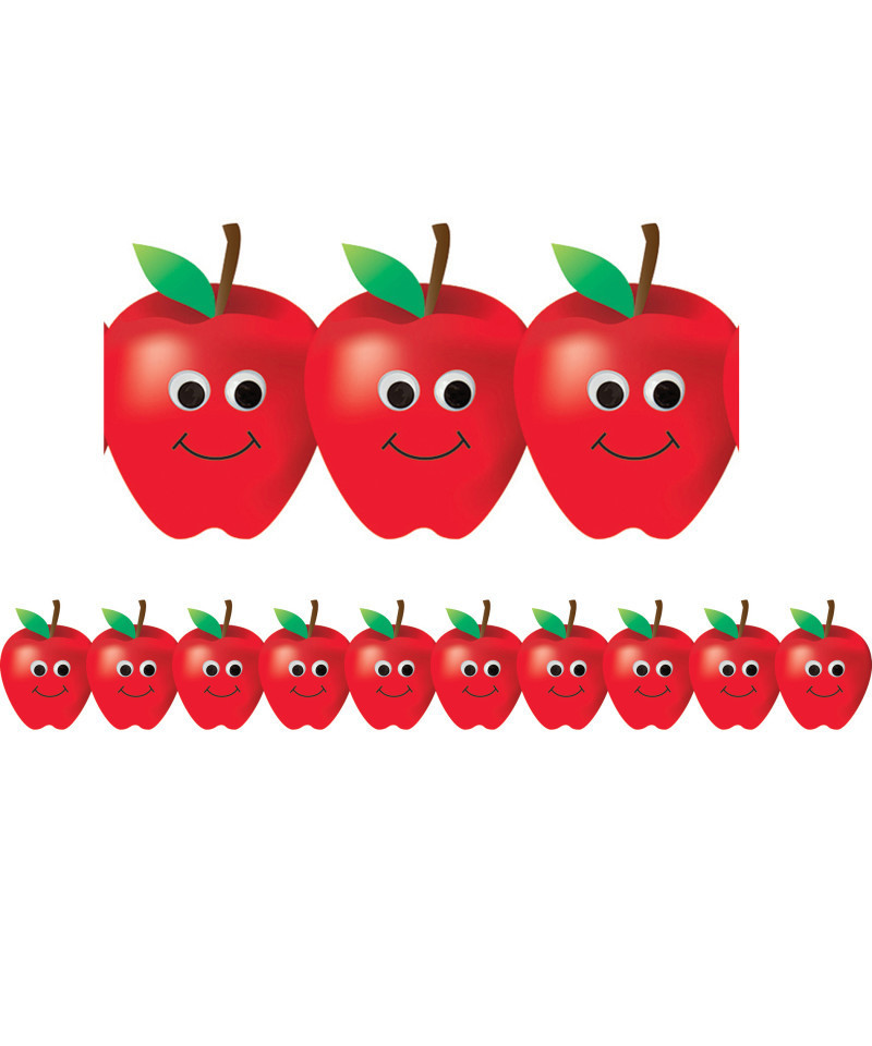 Happy Apples Bulletin Board Trimmers are strips of border trim that can turn the ordinary into something extraordinary. With bright and smiling faces, these apples aren't just for the teacher. Your students will be beaming too when they are greeted by these cheery apples! Each pack includes 12 strips measuring 3" x 36", for a total of 36 feet of border.