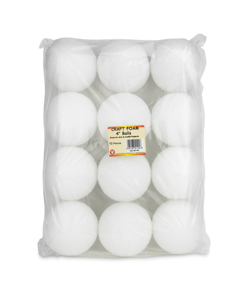 Craft Foam balls are the foundation of many fantastic crafts projects and decorations. Polystyrene Foam is simple to decorate, yet yields professional looking crafts. Use as a base for floral arrangements or craft centerpieces. Teachers love foam balls for science projects and models; you can even create a model solar system with the large selection of sizes! These balls are popular for creating and decorating holiday ornaments and decorations. So get out some tissue paper, sequins, paint and glue, and let your creativity start running! Foam Balls measure 4" in diameter. Each pack includes 12 craft foam balls.