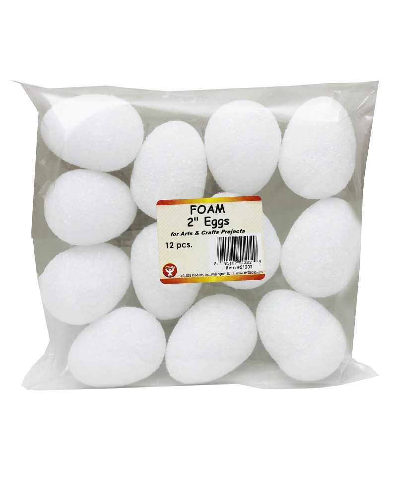 - WHITE FOAM EGGS – Craft Foam is simple to decorate, yet yields professional looking crafts. These white polystyrene eggs measure 2 inches.