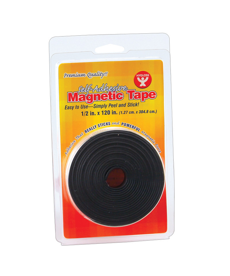 A must have for every home and classroom, Hygloss Self-Adhesive Magnetic Tape is perfect for allowing almost anything to stick to a metal surface like a desk, dry-erase board, locker or refrigerator. With Hygloss self-adhesive Magnetic Tape, the possibilities are endless! Cut to any size, then peel and stick to virtually any material: wood, metal, paper or plastic, to turn all your kids crafts into decorations for any magnetic surface. You can also use it to hang business cards or notices on the refrigerator. Teaching is made easy with magnetic tape; attach a strip of magnet to word strips or classroom decorations to easily display on a dry erase board. Hygloss Self-Adhesive Magnetic Tape provides the ultimate combination of fun, educational and convenient! Each roll measures 0.5" x 120".