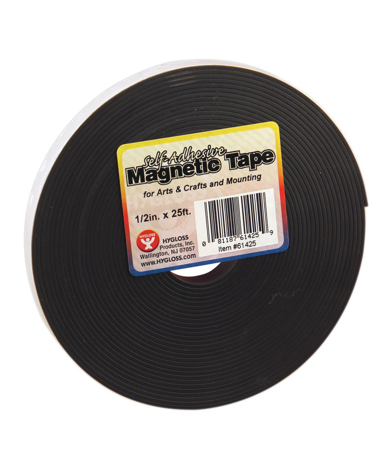 A must have for every home and classroom, Hygloss Self-Adhesive Magnetic Tape is perfect for allowing almost anything to stick to a metal surface like a desk, dry-erase board, locker or refrigerator. With Hygloss self-adhesive Magnetic Tape, the possibilities are endless! Cut to any size, then peel and stick to virtually any material: wood, metal, paper or plastic, to turn all your kids crafts into decorations for any magnetic surface. You can also use it to hang business cards or notices on the refrigerator. Teaching is made easy with magnetic tape; attach a strip of magnet to word strips or classroom decorations to easily display on a dry erase board. Hygloss Self-Adhesive Magnetic Tape provides the ultimate combination of fun, educational and convenient! Each roll measures 0.5" x 300".