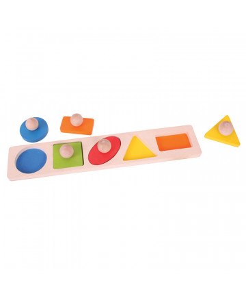 Match each brightly colored wooden piece to the correctly shaped slot on the base board. Easy to lift wooden puzzle pieces feature a pegged handle... Add to cart Bigjigs® Toys Shape Matching Puzzle $45.93
